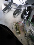 例えば、エフェクトボード内に設置するジャンクションBOXや、7PinDIN端子装着のアンプをループスイッチャーのラッチ信号で制御するのに信号を分岐する装置が欲しいといったオーダーや、エフェクターの製作、モディファイといったサウンドに関するツールの作業から、ライブステージで使うクリスタルギターやガイコツマイクを光らせてみたいといったご相談も多数頂きます。